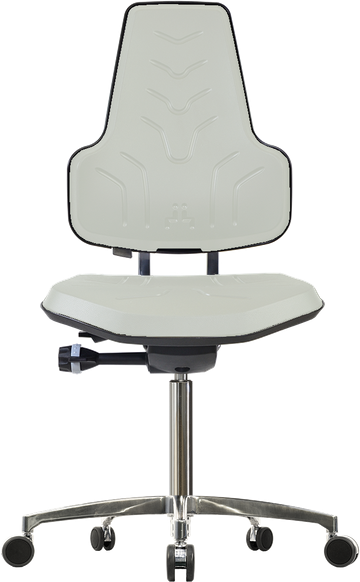Die Sitz- und Rückenflächen bestehen aus strapazierfähigem Soft PUR Integralschaum, der besonders hygienisch, abriebfest und leicht zu reinigen ist. Die integrierten Luftzirkulationskanäle in der Polstertechnologie sorgen für ein angenehmes Sitzklima, selbst bei längeren Arbeitseinheiten.